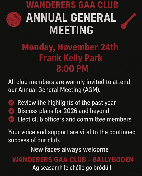 All motions and nominations of officers should be returned to secretary.wanderers.dublin@gaa.ie before November 3rd.